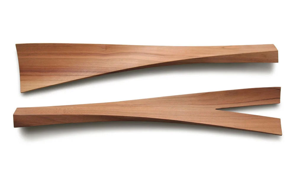 The form of WOODY KELLEN is unusual for salad servers. When observed from afar, it does not fulfill one’s standard expectations for function. But the initial impression is misleading – the organic twisting shape of the utensils is best appreciated when held in the hands. And that’s what makes it a perfect product: the heart is first moved by the “Trojan Horse” of the design, then a momentary doubt might creep in, only then to be followed by the pure pleasure of the extraordinary which does so much more than merely fulfill a function.